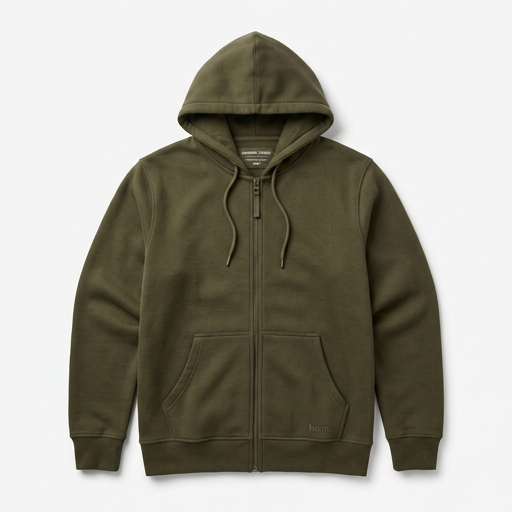 A streamlined zip hoodie with a soft fleece interior and clean casual shape.